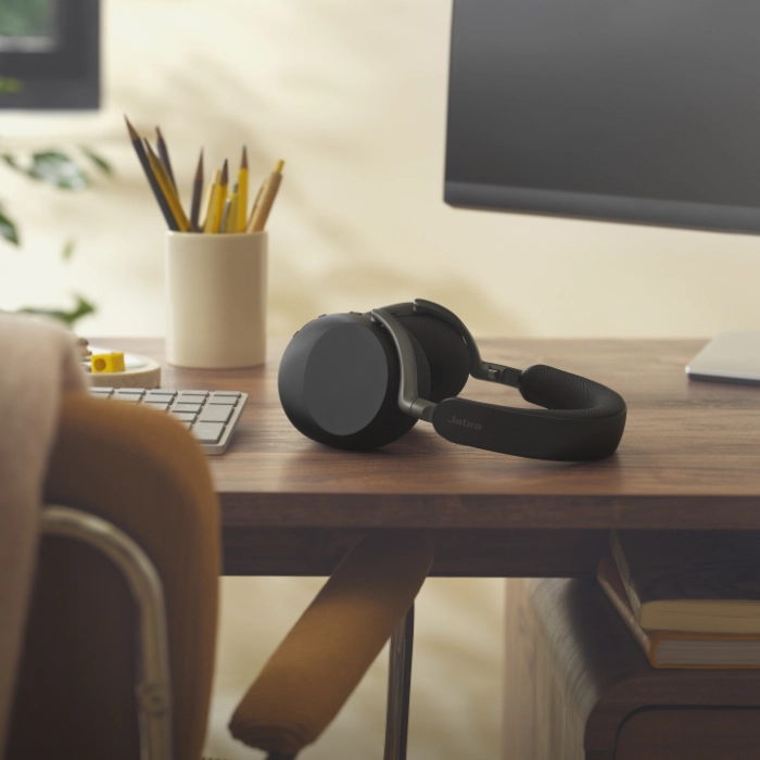 The Evolve3 85 with charging dock, the lightest headset in its class, is designed for all-day wear. It’s 35% slimmer than its predecessors and features a foldable design that neatly fits into a compact travel pouch. This makes it the ideal “cross-over” headset for both professional work and personal leisure.